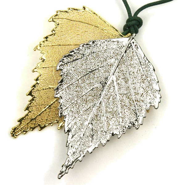 Листья собирают вручную в итальянском природном заповеднике Тичино, высушивают и наносят внушительный слой золота или серебра (толщиной от 7 до 12 микрон). Украшения получаются легкие и долговечные.