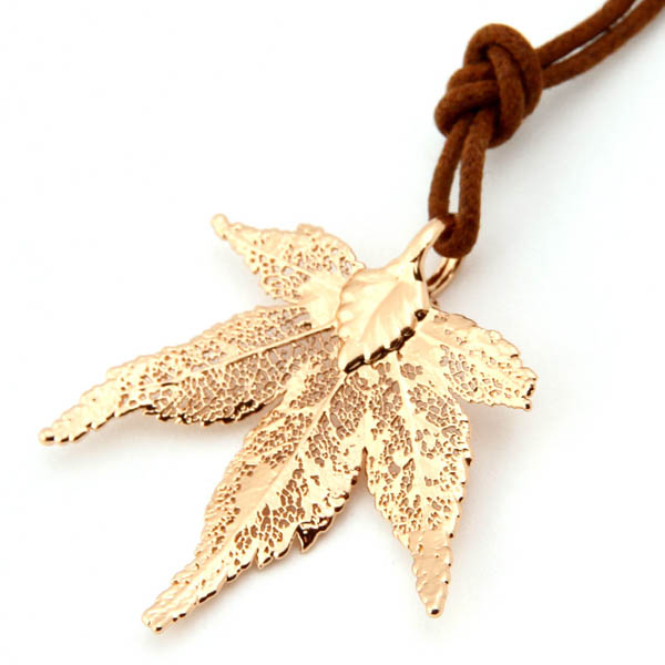 Лист японского клена комплектуется плетеным вощеным хлопковым шнурком. Длину регулируете самостоятельно, как вам будет удобно. Лист прекрасно будет смотреться и на цепочке из красного золото. Благодаря золотому напылению цвет кулона полностью совпадет с цветом цепочки.