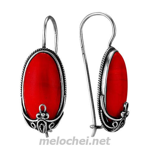 Серьги. Посеребрение. Вставка - имитация коралла, агата или бирюзы.
