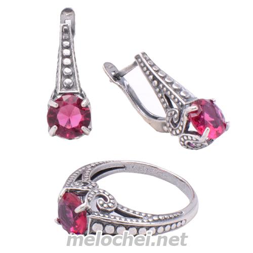 Комплект - серьги и кольцо. Посеребрение. Вставка - фианиты различных цветов.