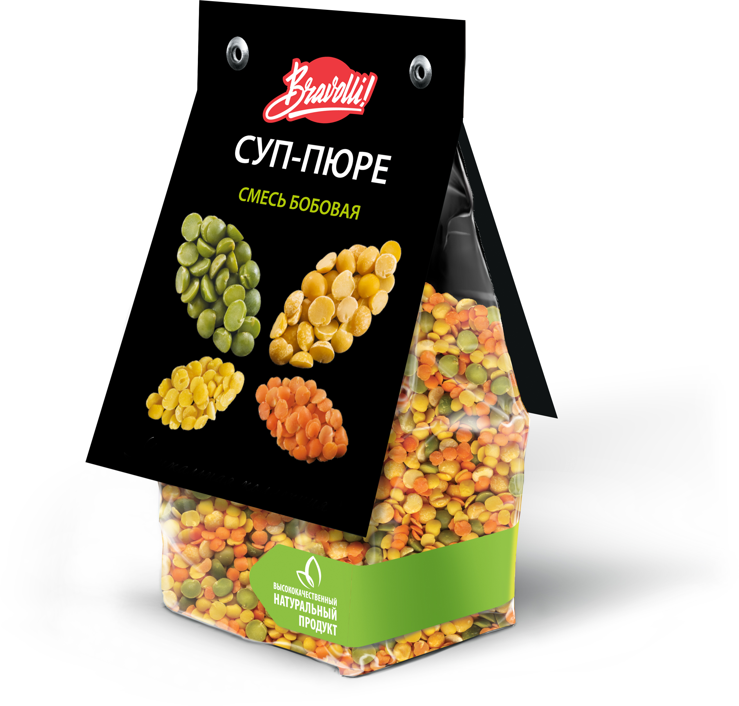 -смесь красной и желтой колотой чечевицы, зеленого и желтого колотого гороха