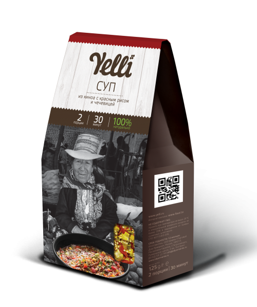 Состав: киноа, рис красный, чечевица жёлтая, овощи и зелень сушёные (кукуруза, паприка, морковь, лук репчатый, сельдерей, чеснок, петрушка), специи (перец чёрный молотый, кориандр молотый).