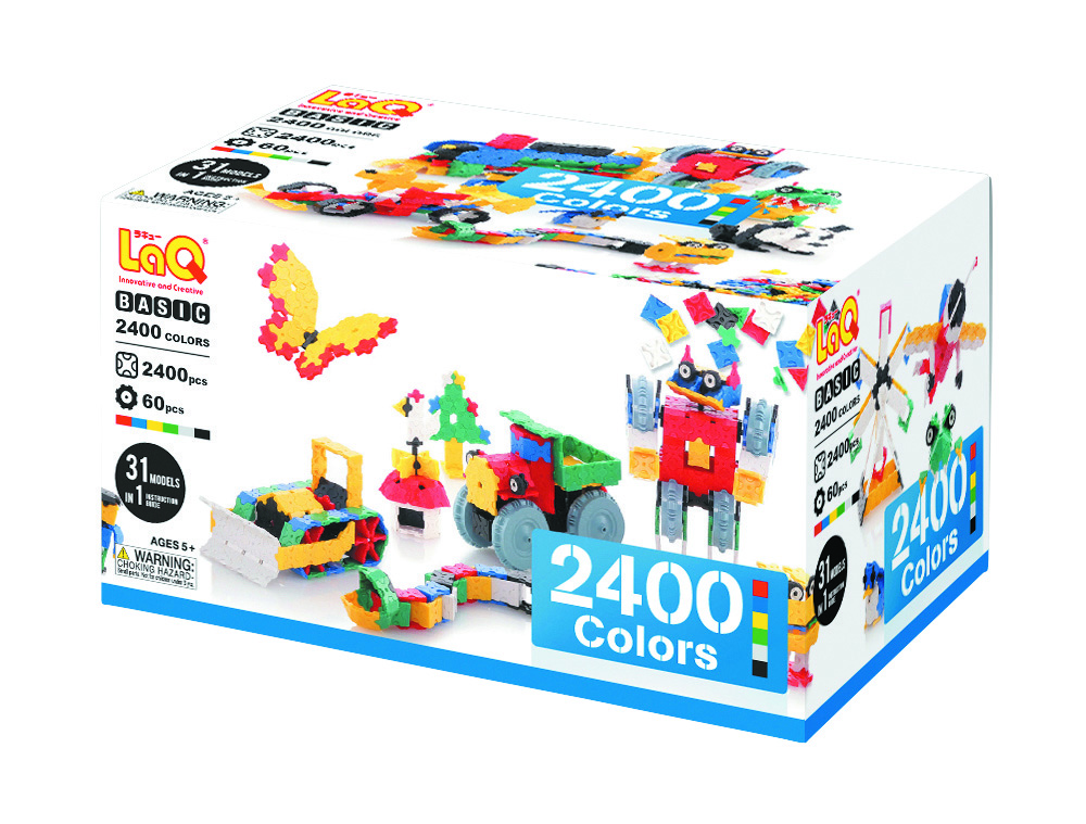 - 2400 деталей 7 различных типов частей LaQ в 6 основных цветах: красный, синий, желтый, зеленый, белый и черный.