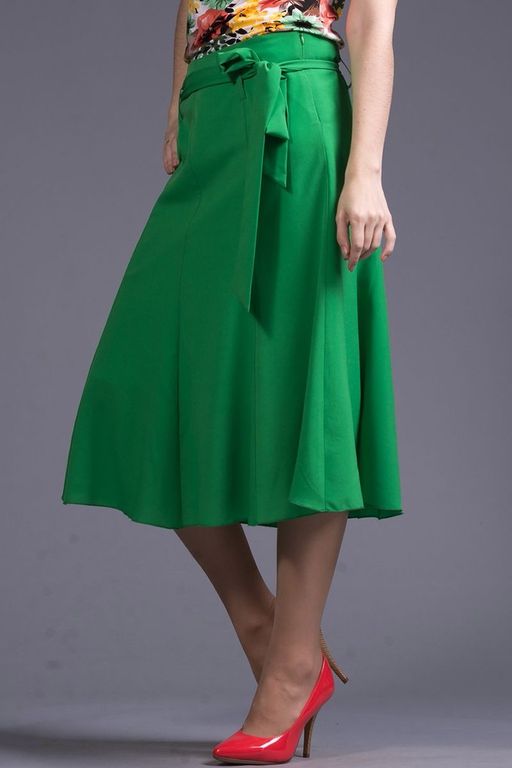 Превосходная юбка женская, из восьми клиньев расширенных к низу, на подкладке, из натуральных тканей.Юбка дополнена длинным съемным, завязывающимся бантом, поясом. Пояс вдевается в четыре шлевки, которые настрачиваюся на клинья, по две, на переднее и заднее полотнище юбки .Верх юбки на обтачке. В левом боковом шве обработана застежка, на потайную <<тесьму-молния>>. Длина изделия демократична, ближе к классике. Используемые для изготовления юбки ткани, только из натуральных волокон, с широкой палитрой расцветок и современных принтов. Такая юбка, придаст вашему образу женственность, немного кокетства и достойно займет свое место в вашем гардеробе