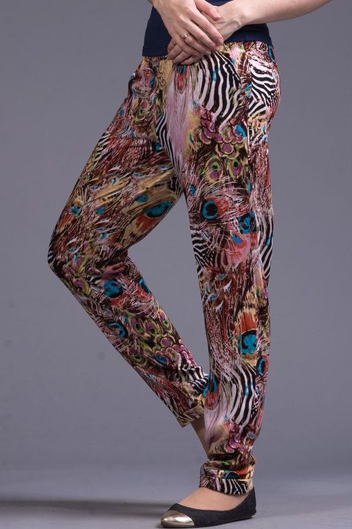 Оригинальные брюки женские, полуприлегающего силуэта из натуральных тканей. Брюки на притачном поясе, собранном на <<нитку -- резинку>> на спинке и часть на полочке. Пояс дополнен притачной отлетной деталью, завязывающейся на бант , который придаст вашему образу некоторую кокетливость и обратит внимание окружающих Передние половинки брюк с боковыми карманами.По низу брюк, манжеты, цельновыкроенные с основными деталями, которые завершают замысел художника. Высококачественные ткани из которых изготовлены брюки , наделены сдержанным монохромным принтом, который позволит им, прекрасно сочетаться с различными вещами вашего гардероба.
