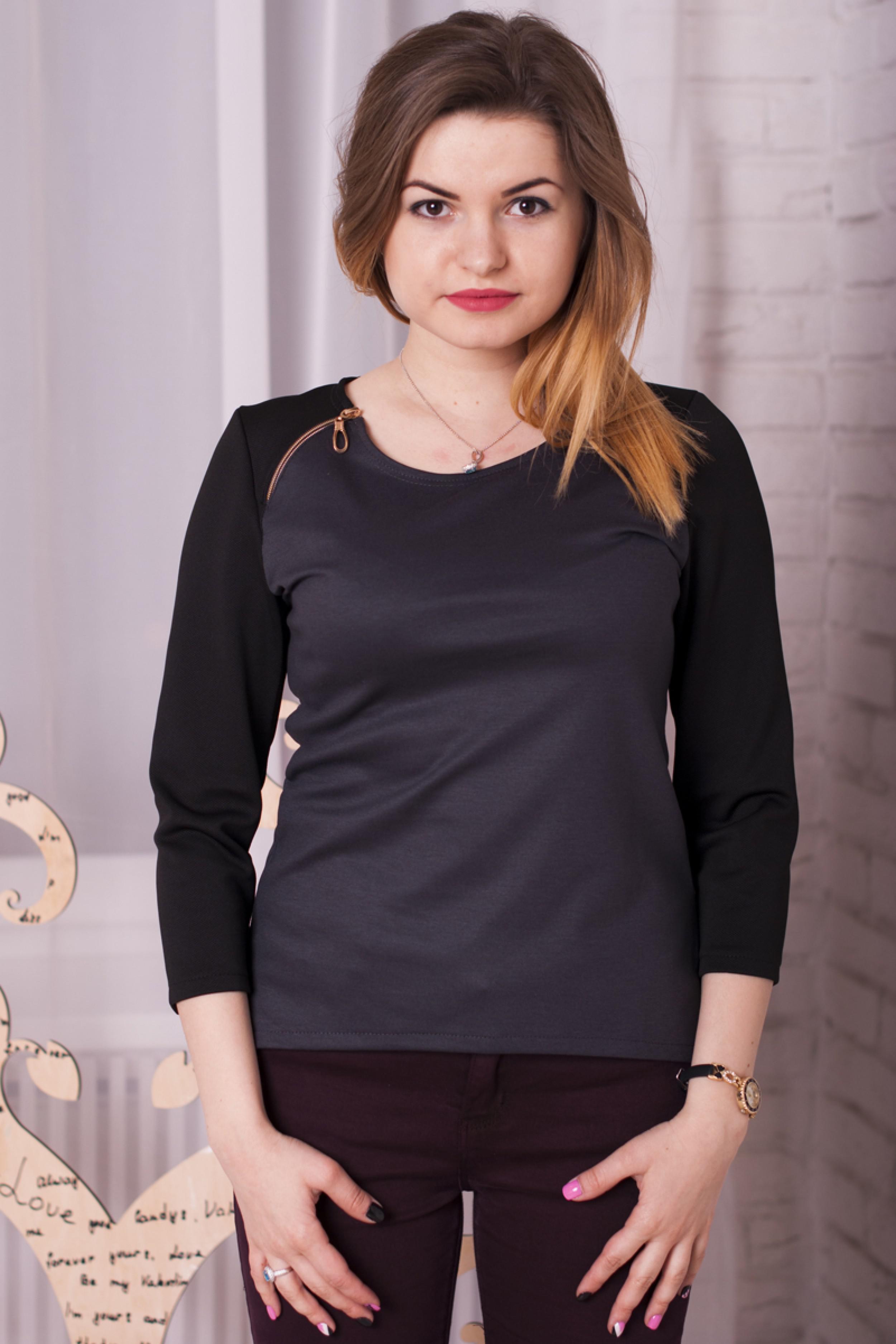 Красивая стильная кофточка. Рукав четвертной, спинка чуть длиннее переда. Справа на предплечье декор-золотой замочек. Рукава черные.