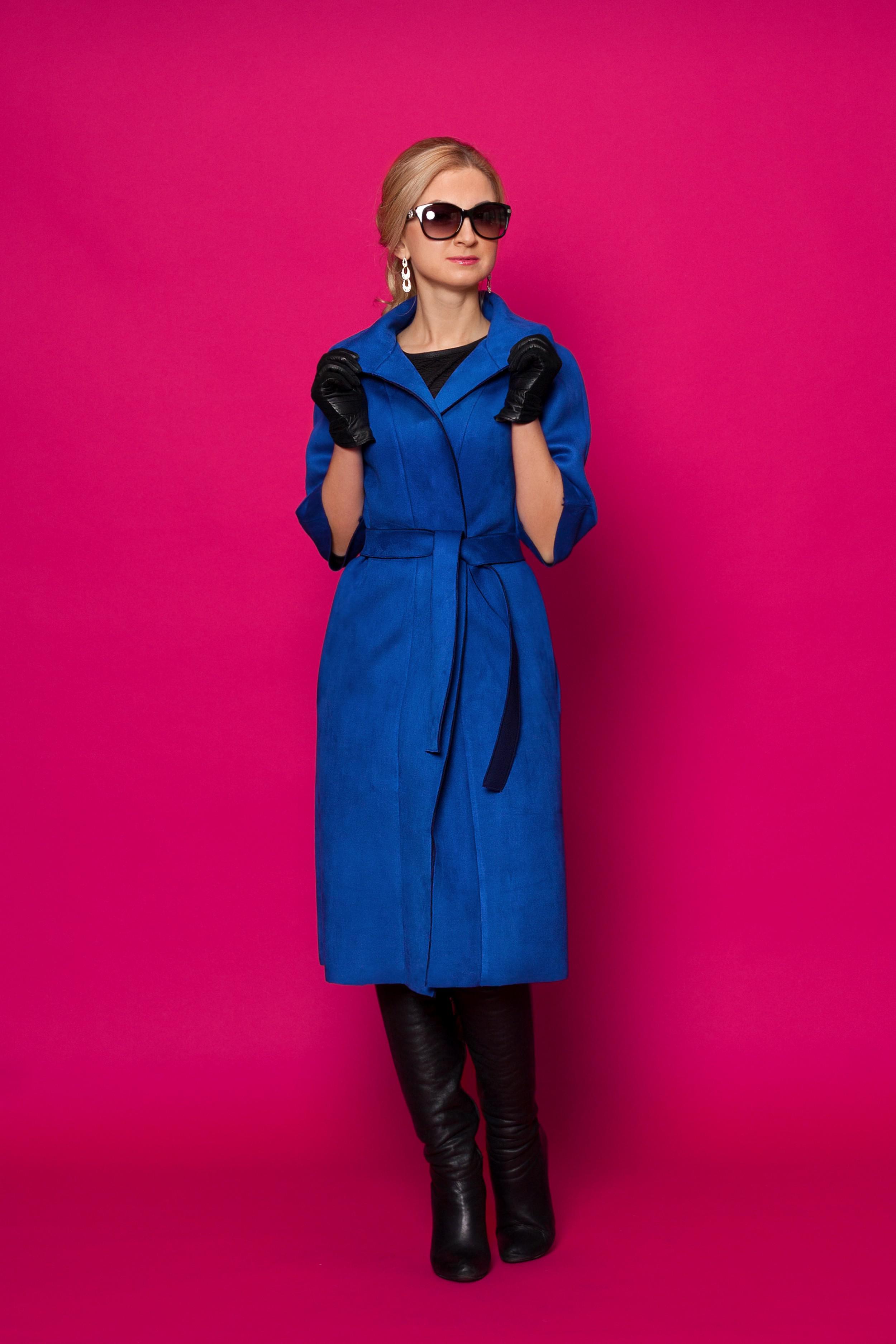 Шикарное замшевое пальто прямого покроя на запах без застёжек и завязывается при помощи двустороннего пояса. Рукав реглан длиной 3/4. Пальто без подкладки. Рукава и низ пальто просто обрезка - без прострочки.