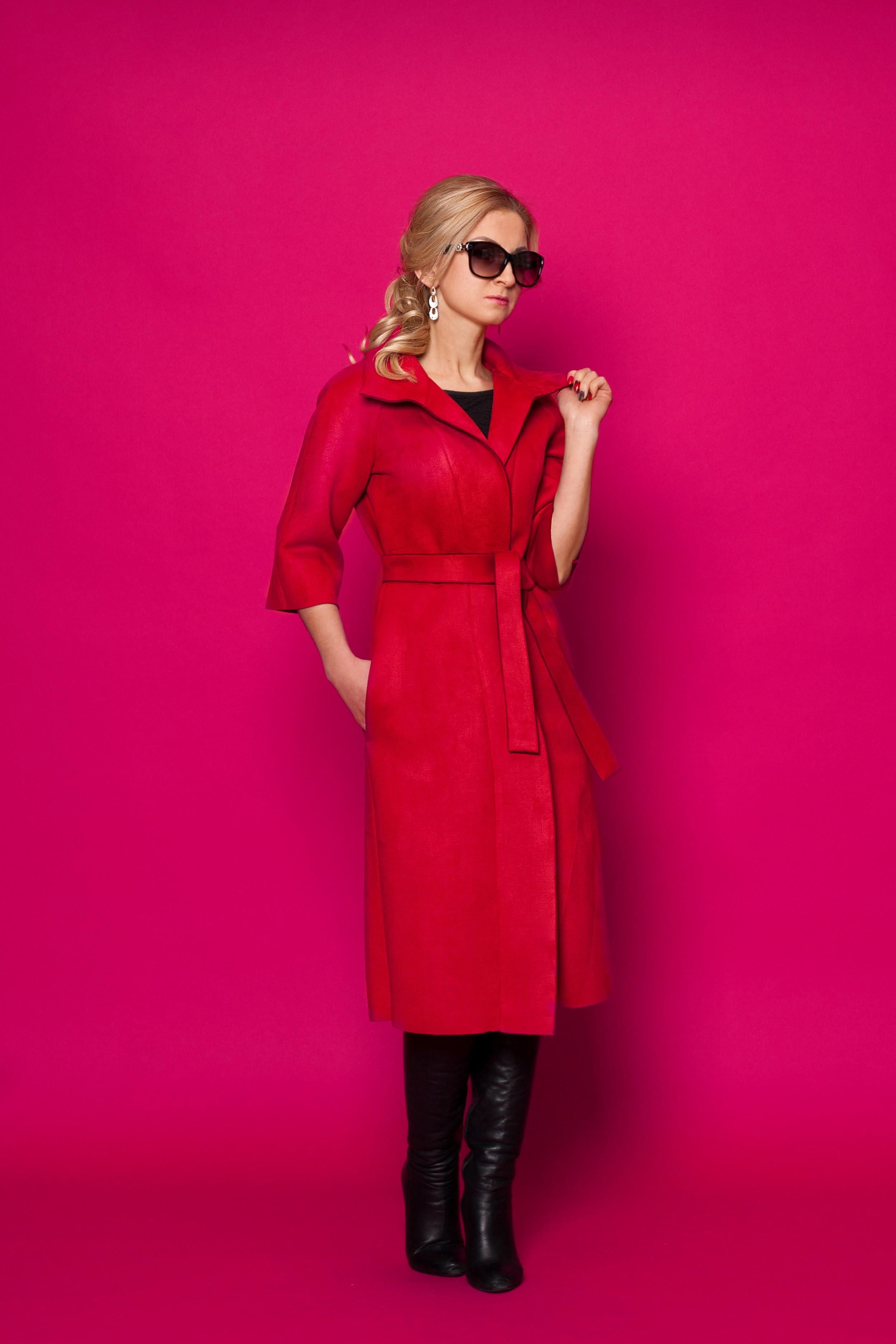 Шикарное замшевое пальто прямого покроя на запах без застёжек и завязывается при помощи двустороннего пояса. Рукав реглан длиной 3/4. Пальто без подкладки. Рукава и низ пальто просто обрезка - без прострочки.