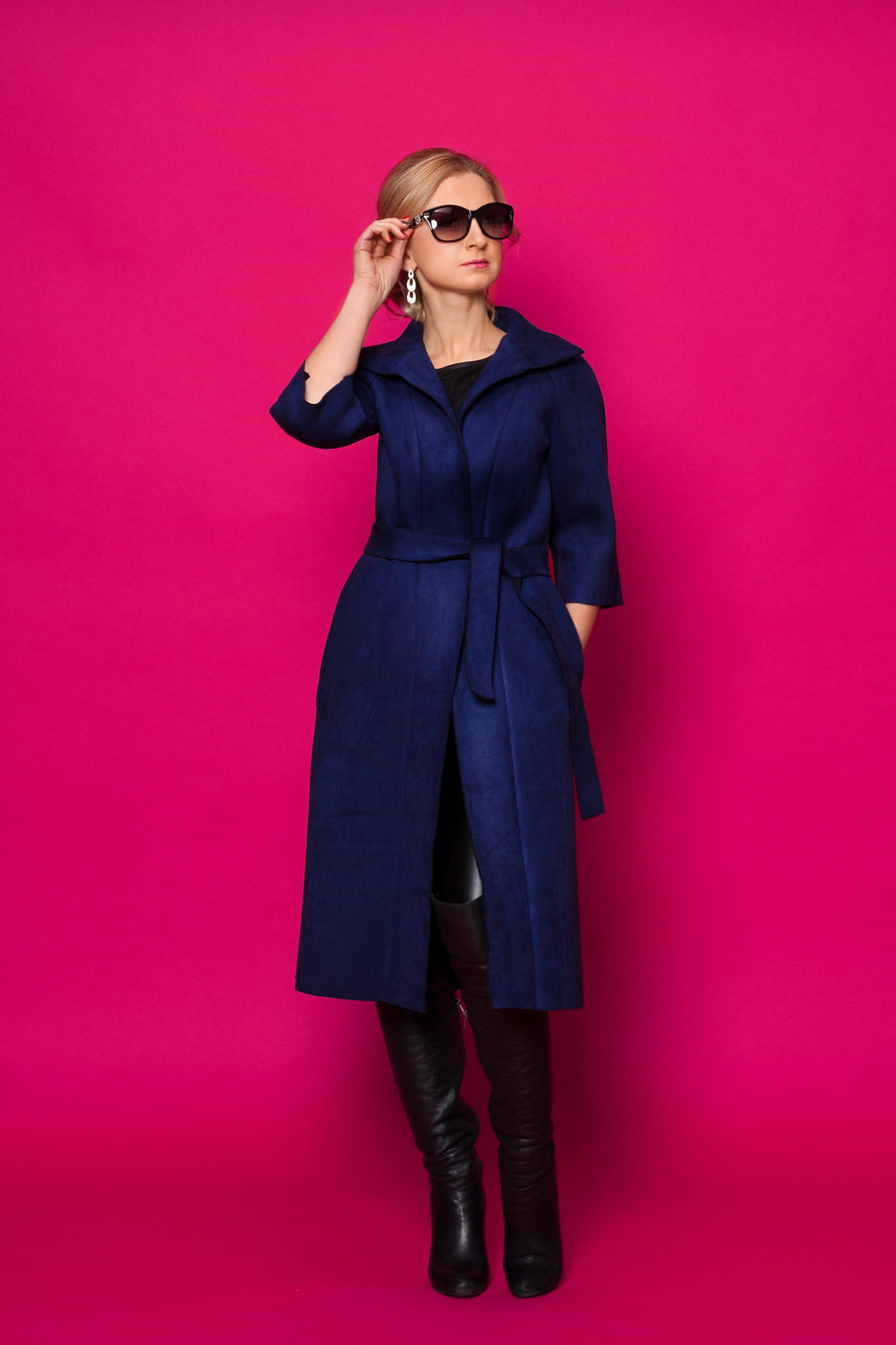 Шикарное замшевое пальто прямого покроя на запах без застёжек и завязывается при помощи двустороннего пояса. Рукав реглан длиной 3/4. Пальто без подкладки. Рукава и низ пальто просто обрезка - без прострочки.