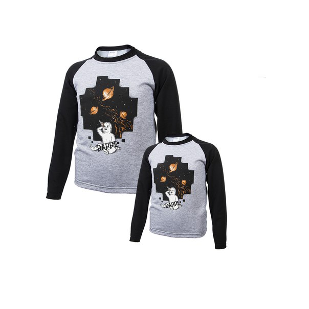 Свитшот мужской с принтом "Мальчик". Серо-черный. 100% хлопок. Размеры S, M, L, XL, XXL