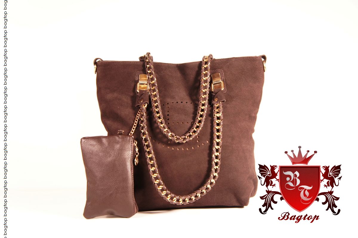 Большая и вместительная модель сумочки для повседневной носки из экокожи с использованием натуральной замши в отделке. Интересные ручки-цепи в переплетении металл-замша. Одно основное отделение внутри и дополнительная сумочка внутри. Размеры 38х34х14см.