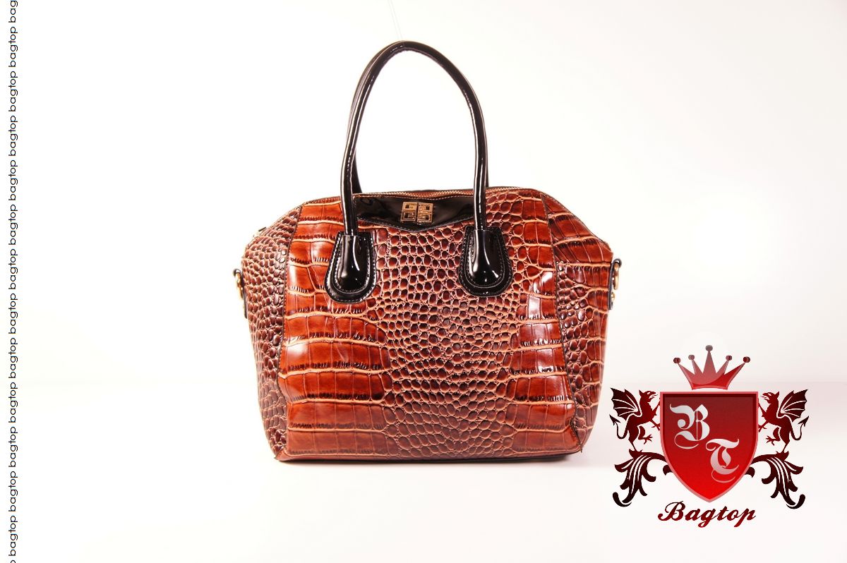 Интересная и крепкая модель сумочки с тиснением под экзотику необычной расцветки. Лаковые ручки и отделка натуральной кожей с лаком. Дополнительный плечевой ремешок и несколько отделений внутри. Размеры 32х28х13см.